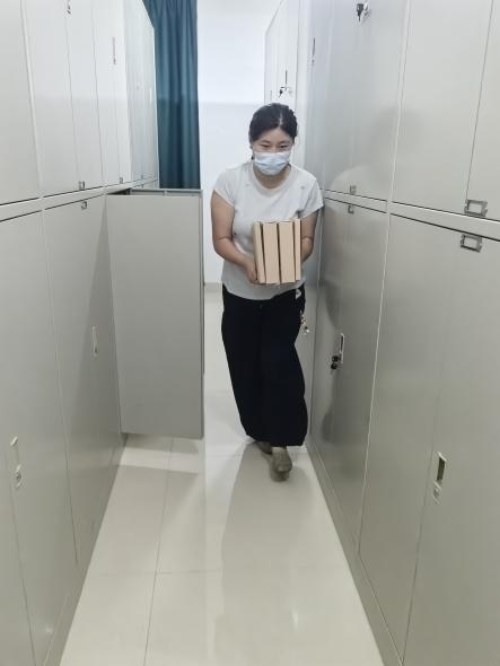 演练中,档案室工作人员迅速响应:警戒组第一时间封锁库房通道,灭火组精准使用灭火器对准火焰根部扑救,疏散组按照“重要档案优先”原则,有序将涉密、珍贵档案转移至预设安全区域,整个演练过程节奏同频,分工明确、衔接顺畅。