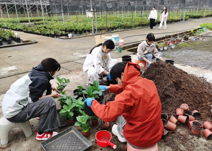 在企业导师与校内教师的共同指导下,学生分组完成了配制基质、幼苗上盆和换盆、穴盘苗装箱、整形修剪、清理沙池和扦插、组合盆栽等多项任务,体验了真实岗位的工作流程。合作企业还安排了技术骨干和优秀校友分享职业成长经验,帮助学生明确就业方向,增强职业素养。