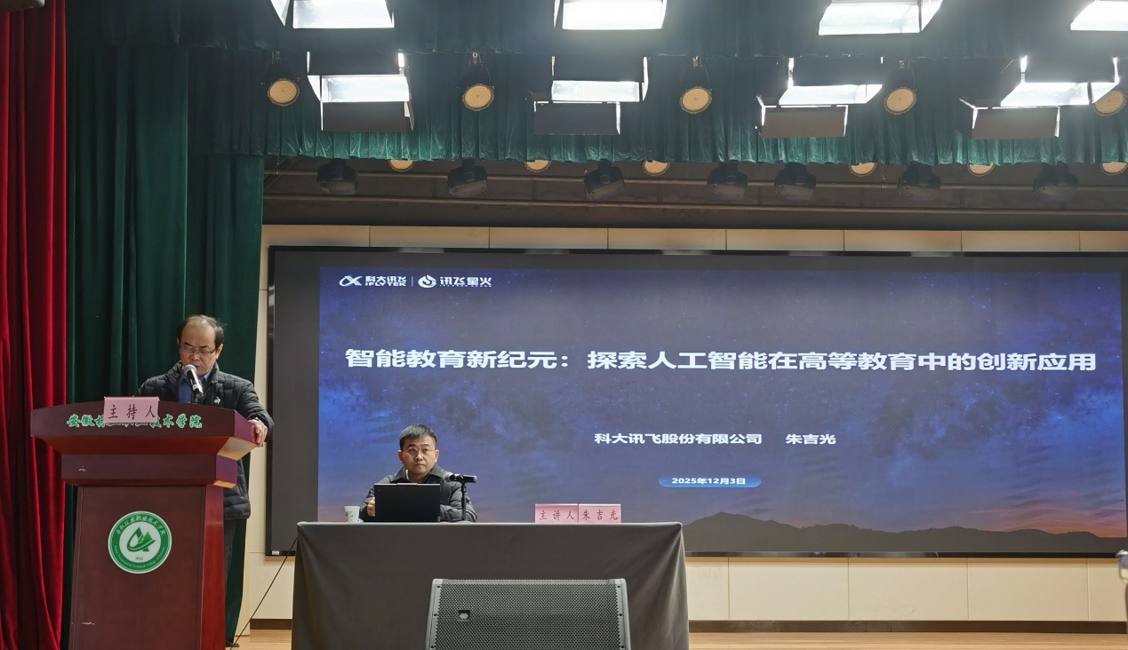 为深度践行国家“人工智能 +”行动战略,积极响应安徽省推动人工智能与教育深度融合的部署要求,携手探寻智能技术助力高等教育数字化转型的路径与未来前景,12月3日下午,学院举办安林大讲堂,特邀科大讯飞高级人工智能高级工程师朱吉光来校,作以《探索人工智能在高等教育中的创新应用》为题的讲座。学院全体教职员工、学生代表共300余人参加活动。活动由学院副院长江大洪主持。