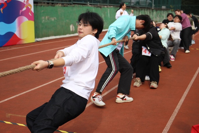 为了增强凝聚力和团队协作能力,运动会设置了集体项目。比赛中,队员们齐心协力、奋力拼搏,现场观众热情高涨,加油声此起彼伏,整个赛场洋溢着团结与欢乐的氛围。我系健儿经过团结协作和默契的配合,在4×100米接力赛勇夺桂冠,跳大绳和拔河比赛中均获得亚军。