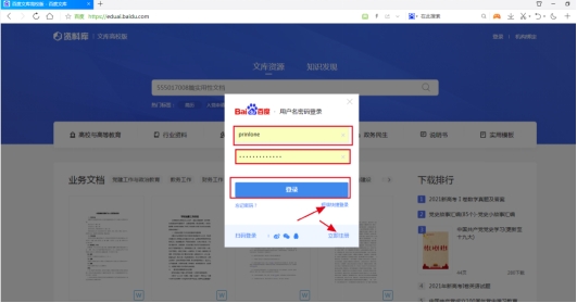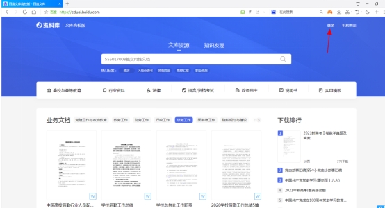 1、在校内打开“百度文库资源库”主页https://eduai.baidu.com/,点右上角“登录”