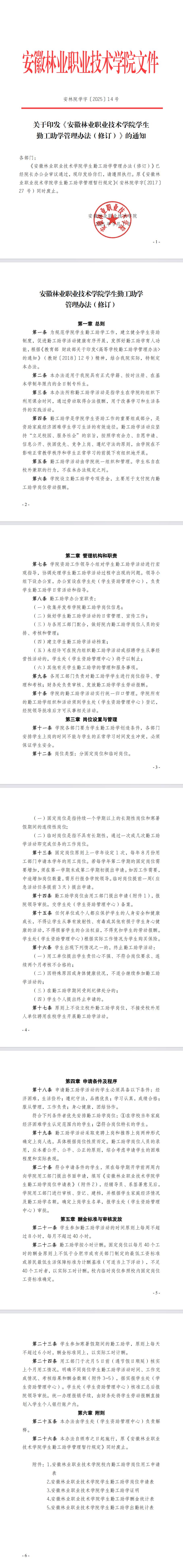 关于印发《安徽林业职业技术学院勤工助学管理办法(修订)》的通知