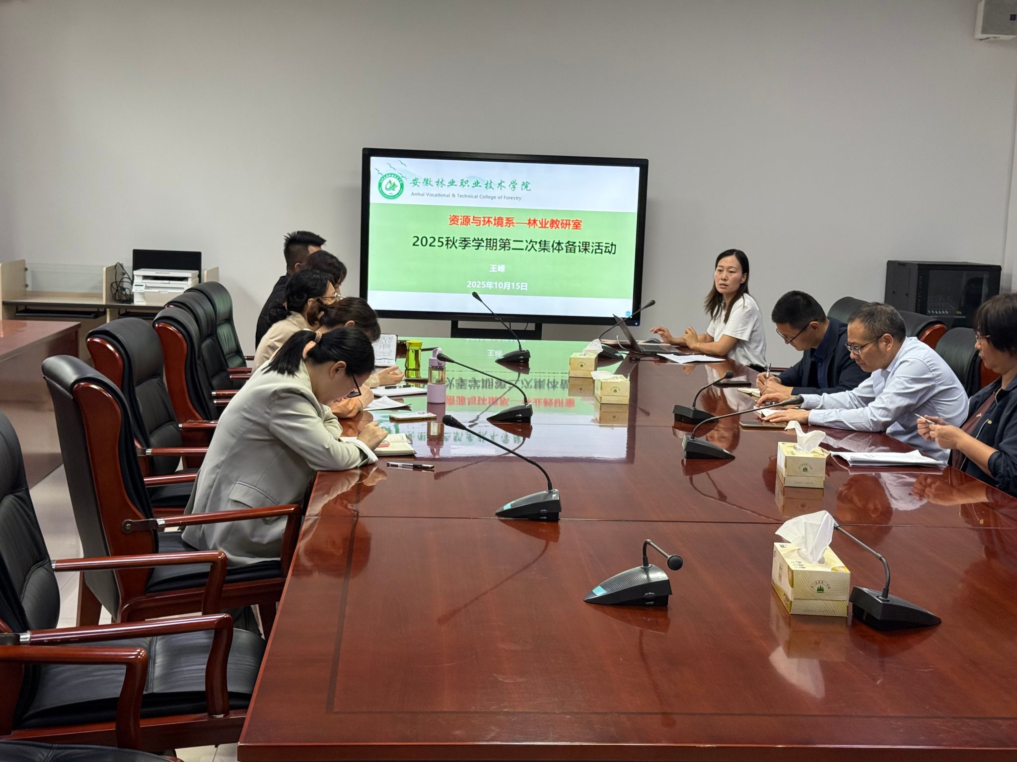 为深入贯彻落实2025年新版教学大纲修订精神,进一步提升教学质量与育人成效,2025年10月15日,安徽林业职业技术学院资源与环境系林业教研室组织开展了本学期第二次集体备课活动。本次活动由王嵘老师主持,林业技术、生态保护技术、森林和草原资源保护、森林草原防火技术等专业的专任教师共同参与。