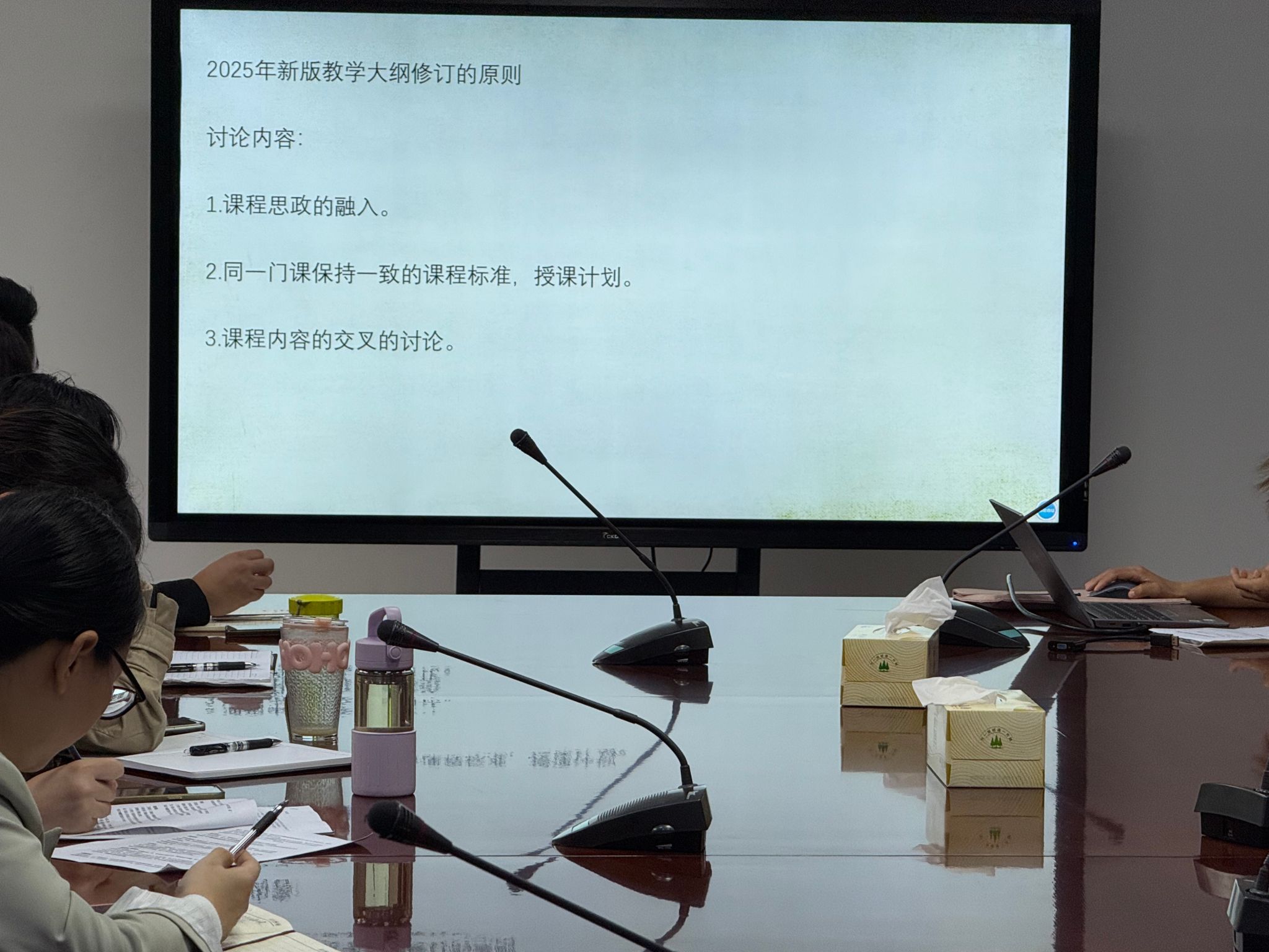 活动围绕“新版教学大纲修订原则”展开深入研讨,重点聚焦课程思政的有机融入、课程标准的统一规范、授课计划的科学制定,以及课程内容之间的交叉与衔接问题。与会教师结合各自专业特点与教学实际,积极建言献策,气氛热烈。
