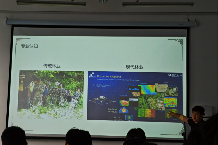 为打破专业壁垒,让2025级新生直观感受跨学科技术融合的魅力,林业信息技术专业和无人机应用技术专业展开协同讲座。以“左手科技,右手青山”为主题,林业信息技术专业负责人陈林兵老师和宋振皞老师,一起为林业信息技术与无人机应用技术专业新生描绘了一幅崭新的职业蓝图。讲座深刻阐述了两个专业作为服务国家生态文明建设与低空经济战略的核心驱动力,通过生动案例揭示了现代林业已迈向“数字化、智能化”的时代前沿。