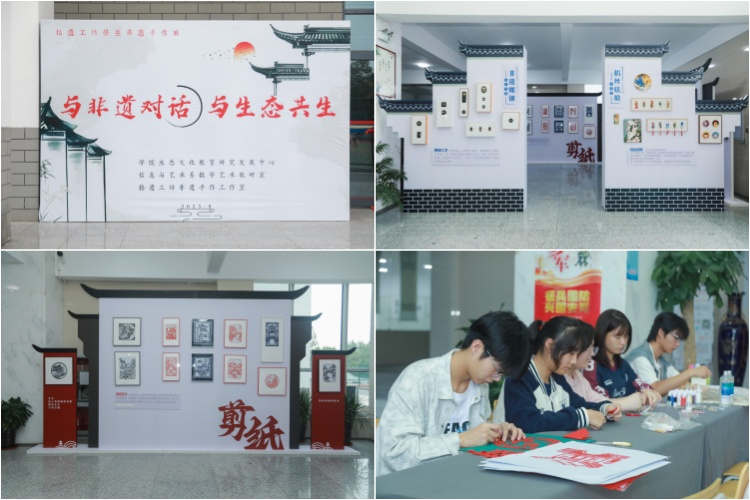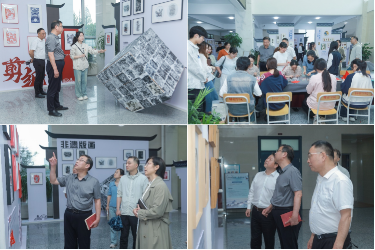 活动伊始,由学生担任讲解员,现场向院领导及教师讲解展出作品的创作理念、工艺技法及蕴含的生态文明理念。活动现场还设置非遗手作体验区,通过深度体验水拓画、螺钿、剪纸等手工项目,切实感受非遗手作的独特魅力。